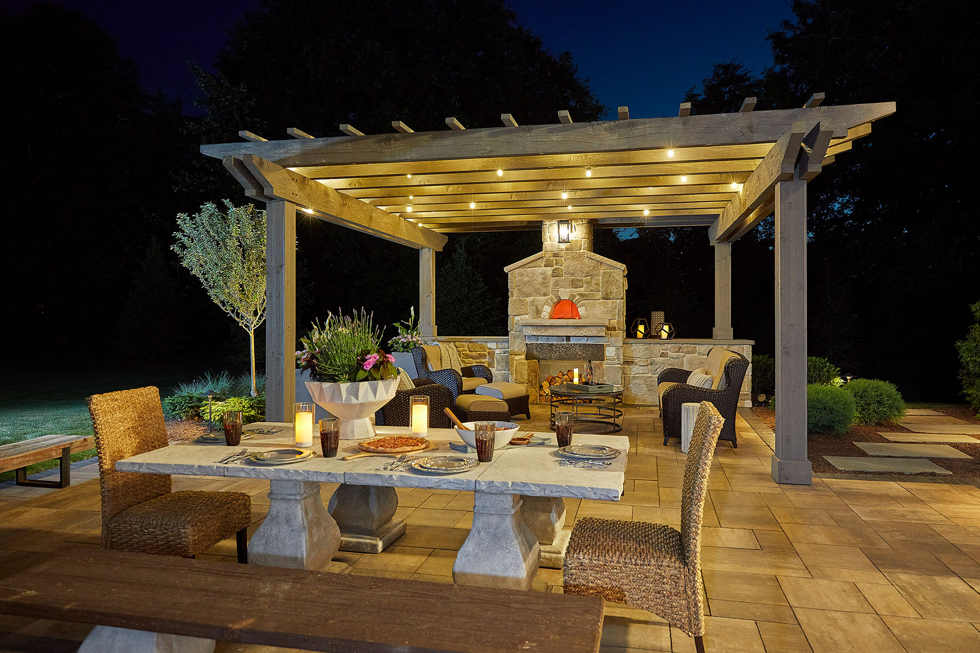 Spending time outside does not have to mean giving up certain indoor luxuries. Imagine gathering with friends and family in your outdoor kitchen to prepare a delicious meal, dining with them in an exquisite dining space, then finishing the night by the stunning outdoor fireplace.